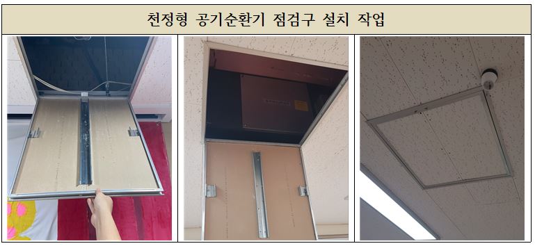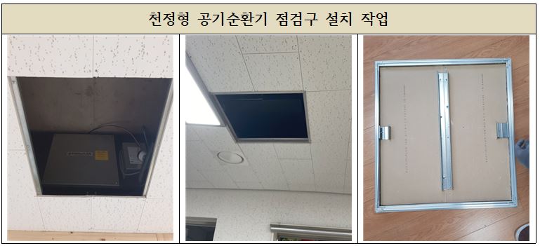 천정형공기순환기의 점검구가 없이 텍스로만 되어 있어던 학교로써