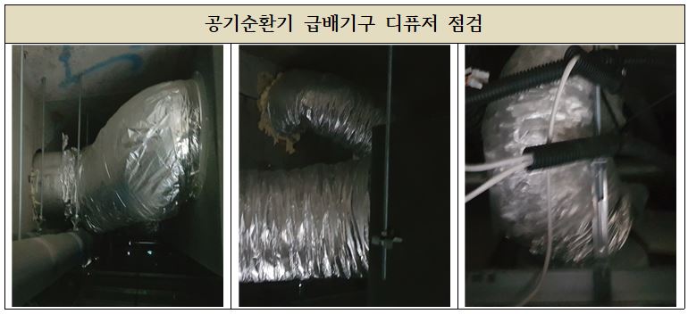 공기순환기 점검 중 한 학급의 공기순환기의 모터 과소음 발생 문제와