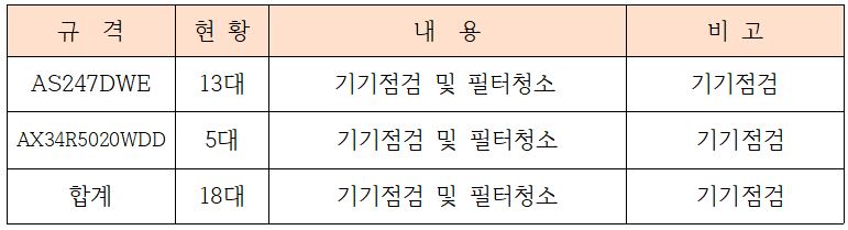 공기청정기유지관리 외 공기순환기유지관리, 냉난방기키트유지관리 등
