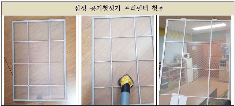 초등학교 특별실에 설치 되어 있는 공기청정기의 기기점검과 청소작업을 진행하였으며