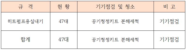 공기청정기유지관리 외 공기순환기유지관리, 냉난방기키트유지관리 등