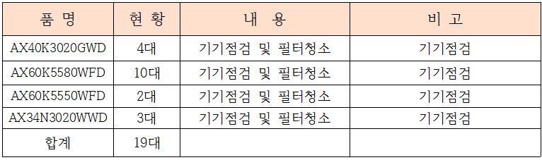 공기청정기유지관리 외 공기순환기유지관리, 냉난방기키트유지관리 등