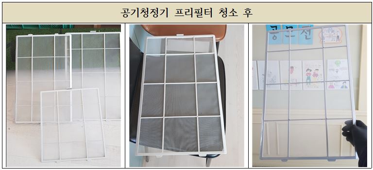 각 학급들의 공기청정기 사용량이 많아 필터의 오염이
