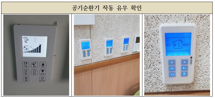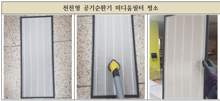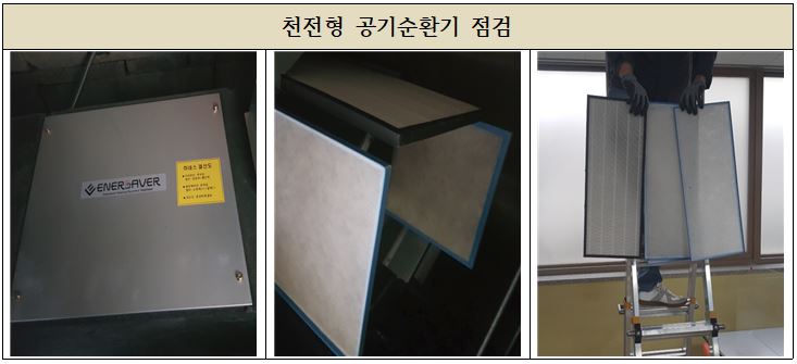 다른제작사 두종류의 공기순환기가 설치된 초등학교의 유지관리 모습입니다.