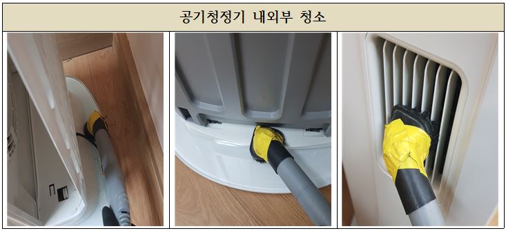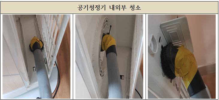 오염된 기기와 필터의 청소를 하고 점검 주었습니다.