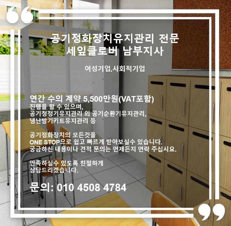 초등학교공기청정기 유지관리 작업을 다녀 왔습니다.