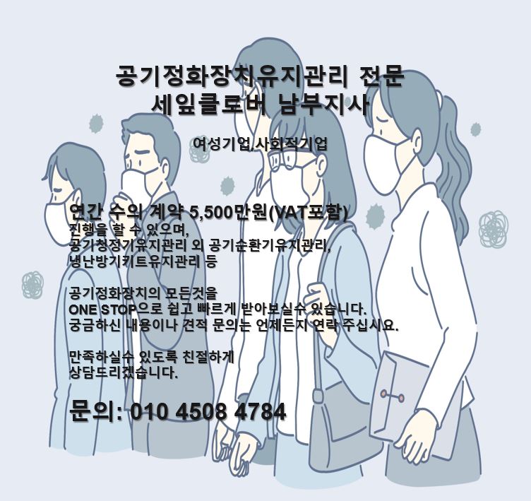 날씨가 많이 쌀쌀해진 가운데 자연 환기를 자주 오래 할수 힘들게 되었습니다.