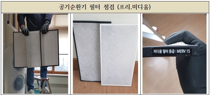교실에 설치 된 공기순환기들의 기기와 필터들을 점검해 주고 특이사항 없이